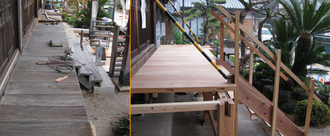 平成22年2月11日 濡れ縁階段改修並びに床下補強工事着工 平成22年4月9日完成